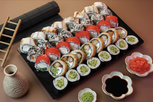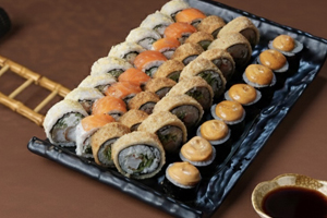 8 Filadelfia,8 Çipsi Roll,8 Baked Maki Roll 8 Hot Salmon Roll, 8 Hot Krab Roll (40 ədəd)